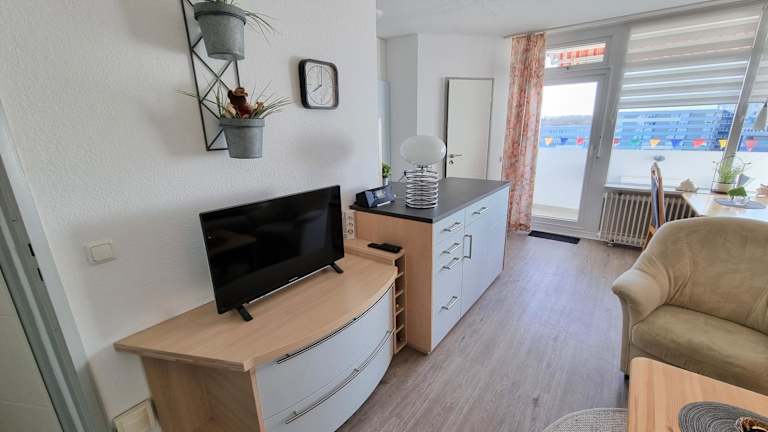 Die Ferienwohnung verfügt über 2 Schlafzimmer, einen Fernseher mit Satellitenkanälen sowie eine gut ausgestattete Küche, die mit einem Kühlschrank und einem Geschirrspüler versehen ist. Zudem gibt es ein Badezimmer mit Dusche. Ein Balkon ergänzt die Unterkunft und ermöglicht einen herrlichen Ausblick.
