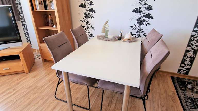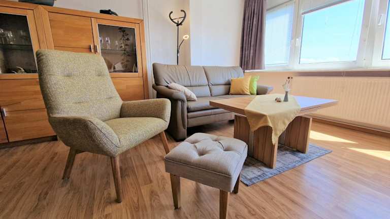 Die Ferienwohnung mit 1 Schlafzimmer umfasst ein Wohnzimmer mit einem Satelliten Flachbild-TV sowie eine voll ausgestattete Küche mit einem Kühlschrank. Die Einrichtung ist darauf ausgelegt, den Gästen eine heimelige Atmosphäre zu bieten.