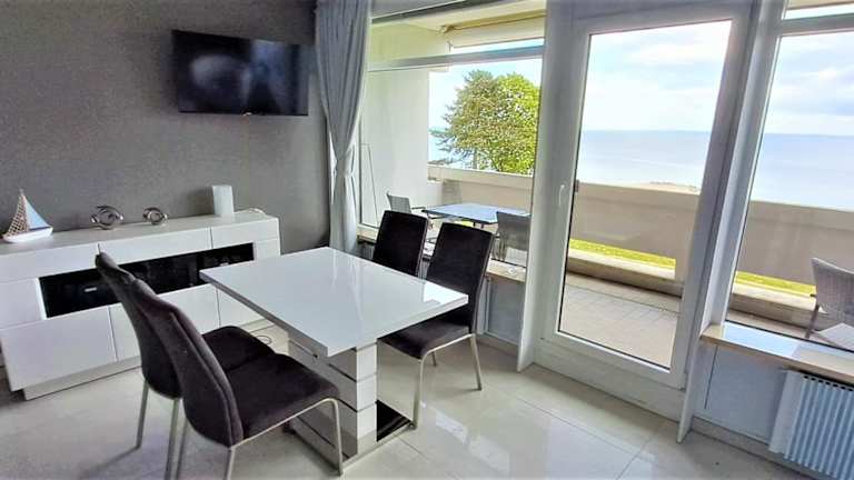Die Ferienwohnung verfügt über einen Balkon mit Meerblick, zwei Schlafzimmer, ein Wohnzimmer, einen Flachbild-TV sowie eine gut ausgestattete Küche, die einen Kühlschrank und einen Geschirrspüler umfasst. Zudem steht ein Badezimmer mit einer Dusche zur Verfügung. Auf Anfrage sind Handtücher und Bettwäsche gegen Aufpreis erhältlich.