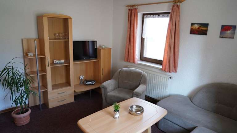 Die Ferienwohnung besteht aus einem Schlafzimmer, einem Wohnzimmer und einem Badezimmer mit Dusche. Zur Ausstattung gehören eine voll ausgestattete Küchenzeile mit Kühlschrank und Kaffeemaschine sowie Handtücher und Bettwäsche, die zur Verfügung gestellt werden.