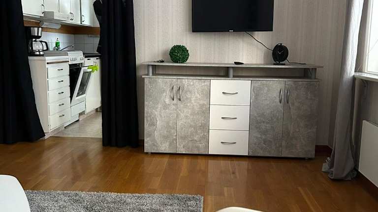 Die Ferienwohnung ist ausgestattet mit einem Schlafzimmer und einer Küche, die mit einem Kühlschrank und einem Ofen versehen ist. Das Badezimmer verfügt über eine Dusche, einen Haartrockner und eine Waschmaschine. Handtücher und Bettwäsche werden bereitgestellt.