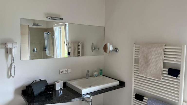 Die Suiten sind mit einem Sitzbereich, einem Flachbild-TV, einer voll ausgestatteten Küche (inklusive Kühlschrank und Geschirrspüler) und einem eigenen Badezimmer mit Bidet und Haartrockner ausgestattet. Auch ein eigenes Badezimmer mit Dusche und Hausschuhen ist vorhanden. Die Zimmer bieten zudem einen herrlichen Blick auf das Meer.