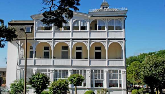 Die Ferienvilla im Stil der Baederarch befindet sich in der Nähe des Hundestrands Sellin und des Strands im Ostseebad Sellin in der Region Rügen. Die Umgebung bietet vielfältige Möglichkeiten zum Wandern sowie für Wassersportaktivitäten wie Windsurfen und Angeln.