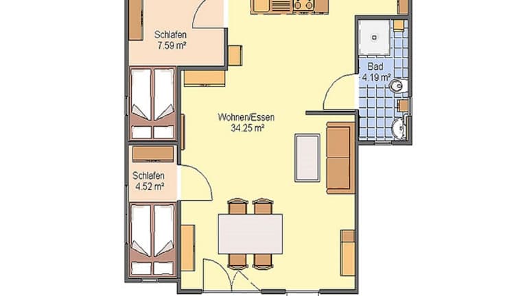 Das Ferienhaus verfügt über 2 Schlafzimmer, einen Flachbild-TV mit Satellitenkanälen und eine gut ausgestattete Küche mit Kühlschrank und Geschirrspüler. Ein Badezimmer mit Dusche ist ebenfalls vorhanden.