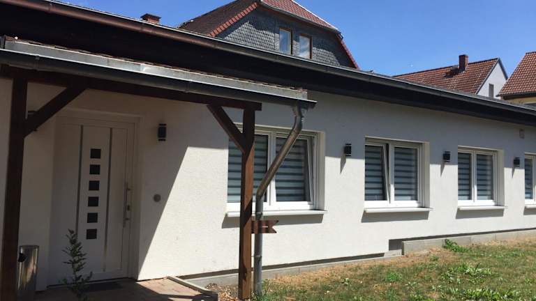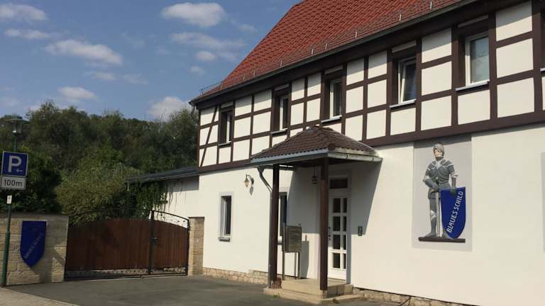 Die Ferienwohnung «Blaues Schild» befindet sich in Dorndorf-Steudnitz, lediglich 12 km vom Zeiss-Planetarium und von der Friedrich-Schiller-Universität Jena entfernt. Der Flughafen Erfurt-Weimar ist in etwa 63 km erreichbar.