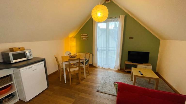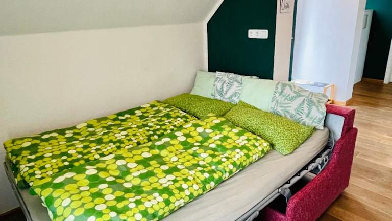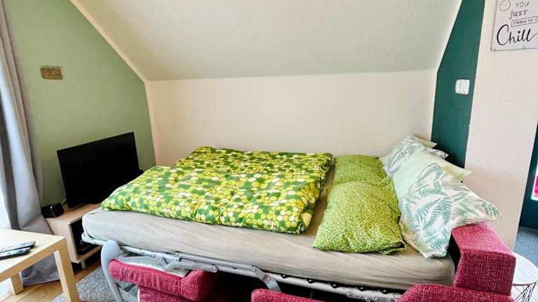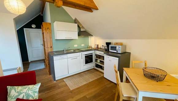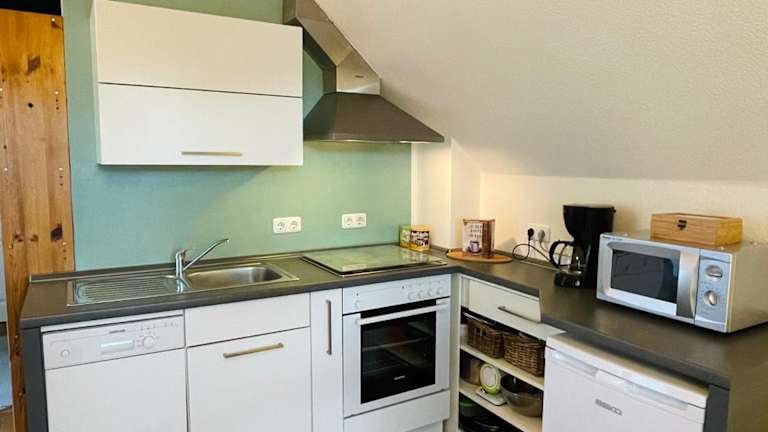 Die Ferienwohnung umfasst ein Schlafzimmer, ein Wohnzimmer sowie ein gut ausgestattete Küche mit Kühlschrank und Geschirrspüler. Zudem stehen ein Flachbild-TV und ein Badezimmer mit Dusche zur Verfügung. Handtücher und Bettwäsche werden bereitgestellt.