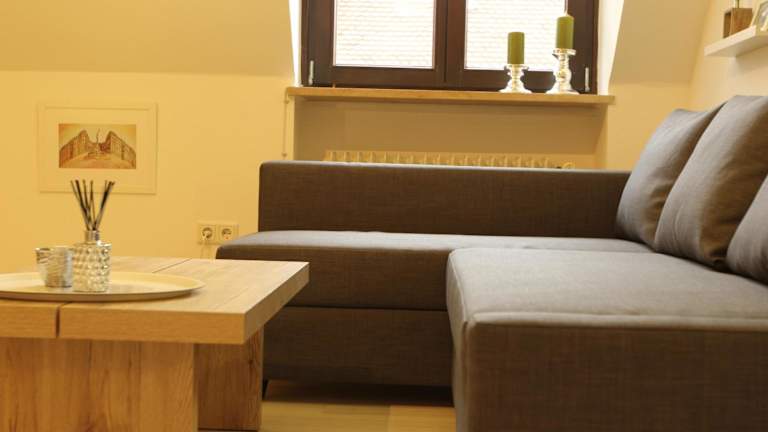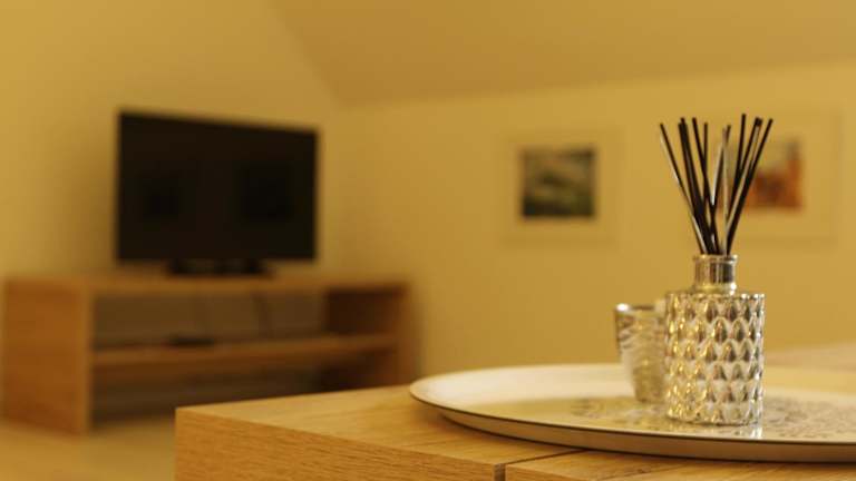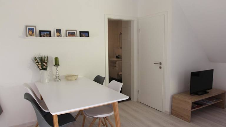 Die Ferienwohnung umfasst 1 Schlafzimmer, ein Wohnzimmer sowie eine voll ausgestattete Küche mit Kühlschrank und Kaffeemaschine. Des Weiteren steht 1 Badezimmer mit Dusche und Haartrockner zur Verfügung. Handtücher und Bettwäsche können gegen Aufpreis bereitgestellt werden.