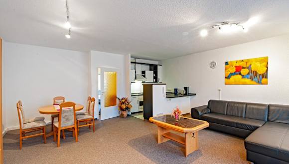 Die Ferienwohnung besteht aus einem Schlafzimmer, einem Wohnzimmer und einer voll ausgestatteten Küche mit Kühlschrank und Kaffeemaschine. Des Weiteren verfügt die Unterkunft über ein Badezimmer mit Dusche. Handtücher und Bettwäsche werden zur Verfügung gestellt.