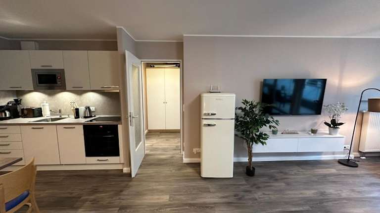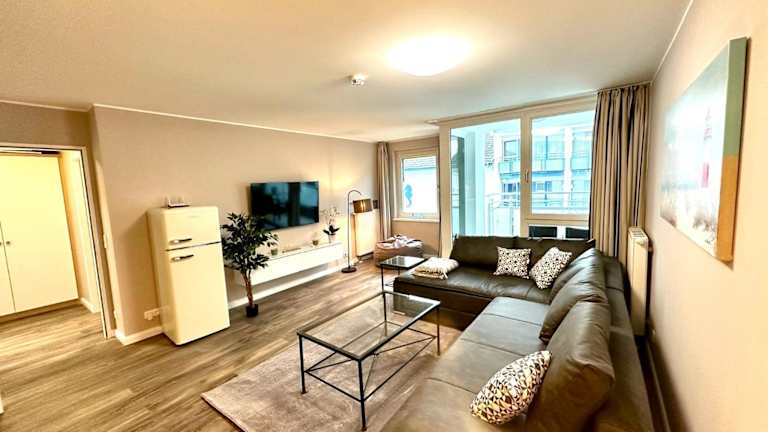 Die Ferienwohnung bietet einen Balkon sowie ein Schlafzimmer und ein Wohnzimmer. Die gut ausgestattete Küche enthält einen Kühlschrank und einen Geschirrspüler. Zudem stehen kostenfreies Wifi und ein TV zur Verfügung. Die Unterkunft ist beheizbar und beinhaltet Nichtraucherzimmer.