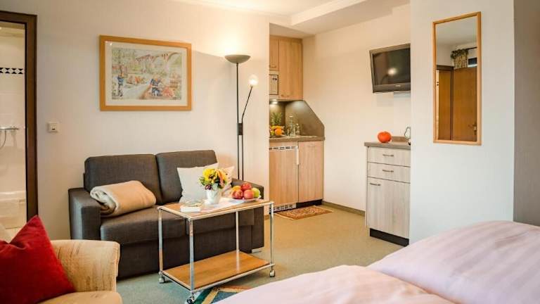 Die Apartments im Café Alt Willingen bieten einen komfortablen Aufenthalt mit wunderschönem Bergblick. Jedes Apartment verfügt über einen gemütlichen Sitzbereich mit einem Flachbild-Sat-TV. Die Badezimmer sind mit einem Haartrockner und kostenlosen Pflegeprodukten ausgestattet. Auf Anfrage können Bademäntel gegen eine geringe Gebühr zur Verfügung gestellt werden. Die Apartments verfügen über einen Essbereich und entweder eine voll ausgestattete Küche oder eine Küchenzeile.