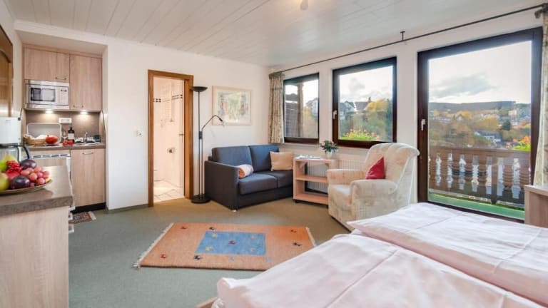 Das Café Alt Willingen ist ein charmantes Ferienhaus in einer ruhigen Gegend von Willingen. Die Apartments bieten einen wunderschönen Bergblick und sind mit modernem Komfort ausgestattet. Das Café vor Ort verwöhnt die Gäste mit frischem Brot und hausgemachten Kuchen. Die Lage des Hotels ist ideal für Outdoor-Aktivitäten wie Wandern und Radfahren. Skifahrer werden die Nähe zum Skigebiet Willingen und zur Skisprungschanze Worldcup Mühlenkopfschanze zu schätzen wissen. Das Café Alt Willingen bietet zudem kostenfreie Parkplätze und eine Sauerland-Card für die kostenlose Nutzung des öffentlichen Nahverkehrs.