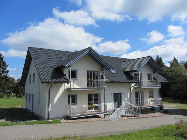 Gerne würden wir Sie in unserem Haus mit 6 voll ausgestatteten Ferienwohnungen mit unterschiedlicher Größe und Einrichtung begrüßen. Beim Wander, Radwandern und Skilaufen, sowohl Alpin als auch Langlauf, können Sie entspannen und die reizvolle Landschaft in Ihrem Urlaub genießen. Die Alte Handelsstraße von Nürnberg nach Leipzig führte durch Neuenbau und die Innerdeutsche Grenze konservierte die Zeitzeugen aus vergangener Zeit. Noch heute sind die Weg- u. Grenzsteine der verschiedenen Epochen zwischen Neuenbau und Tettau zu finden. Der Lutherweg aus Coburg führt über Sonneberg nach Saalfeld über eben diesen Wanderweg. Biker werden die Touren durch den Thüringer- und Frankenwald lieben.
