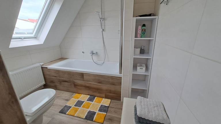 Die Ferienwohnung besteht aus einem Badezimmer mit Badewanne und kostenlosen Pflegeprodukten sowie einem Wohnbereich mit Satelliten-TV.