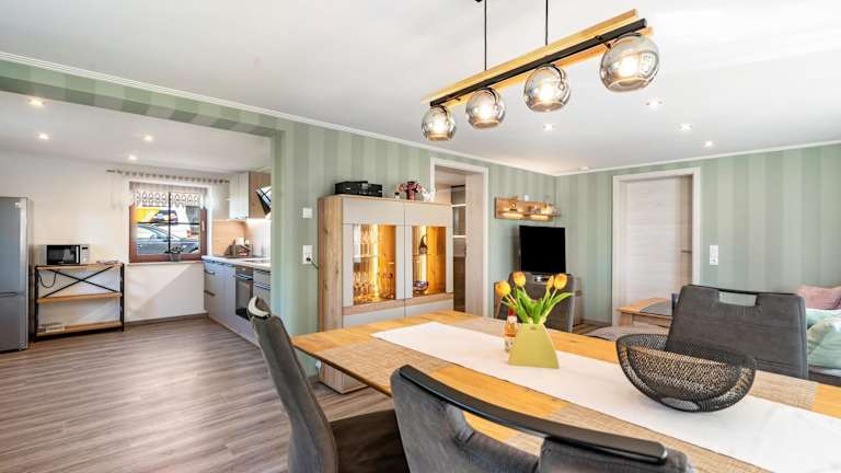Die Unterkunft verfügt über ein Schlafzimmer, ein Wohnzimmer sowie eine gut ausgestattete Küche mit Kühlschrank und Geschirrspüler. Ein modernes Badezimmer mit Dusche ist ebenfalls vorhanden. Handtücher und Bettwäsche werden bereitgestellt.
