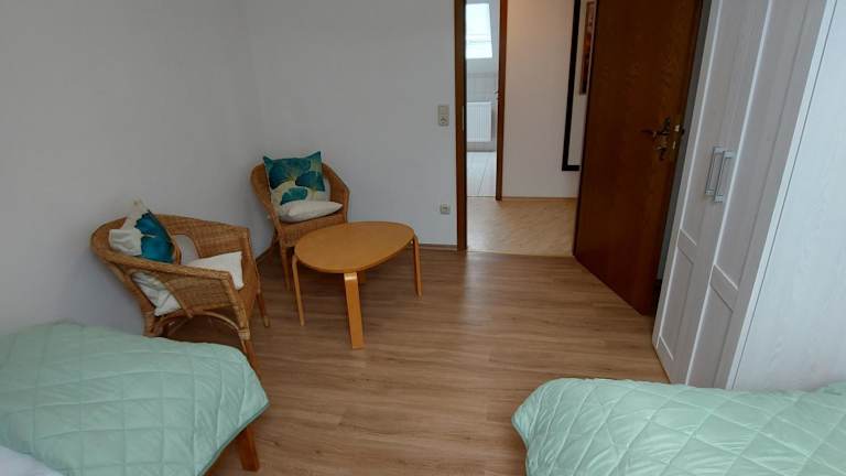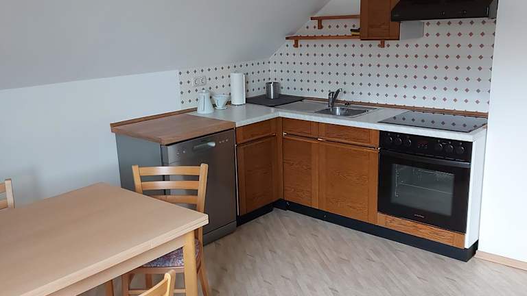 Die Ferienwohnung verfügt über 2 Schlafzimmer, eine voll ausgestattete Küche mit Kühlschrank und Geschirrspüler, einen Flachbild-TV sowie einen Sitzbereich. Ein Badezimmer mit Dusche ist ebenfalls vorhanden. Handtücher und Bettwäsche werden bereitgestellt.