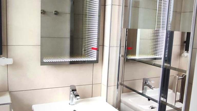 Die Ferienwohnung umfasst zwei Schlafzimmer sowie eine voll ausgestattete Küche mit Geschirrspüler und Ofen. Weiterhin sind zwei Badezimmer mit Dusche und Haartrockner vorhanden. Bei der Ankunft werden Handtücher und Bettwäsche bereitgestellt.