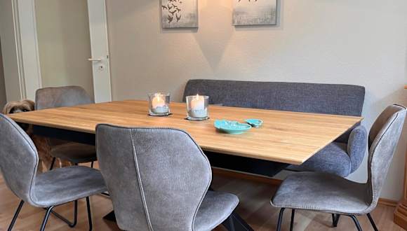 Die Ferienwohnung ist mit einer voll ausgestatteten Küche ausgestattet, die unter anderem einen Kühlschrank, einen Geschirrspüler, eine Waschmaschine, einen Ofen und eine Mikrowelle bietet. Handtücher und Bettwäsche werden bereitgestellt.