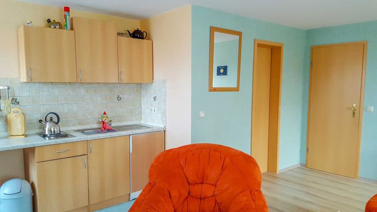 Die Ferienwohnung besteht aus einem Schlafzimmer, einem Wohnzimmer und einer voll ausgestatteten Küchenzeile mit einem Kühlschrank. Das Badezimmer ist mit einer Dusche und einem Haartrockner ausgestattet. Zur weiteren Ausstattung gehört ein TV mit Satellitenkanälen.