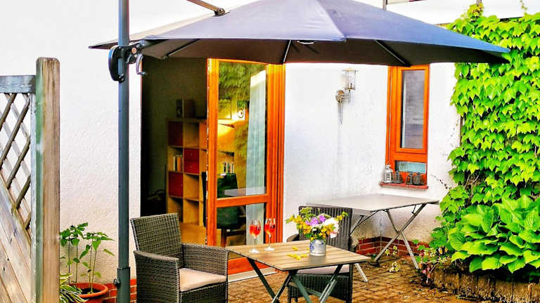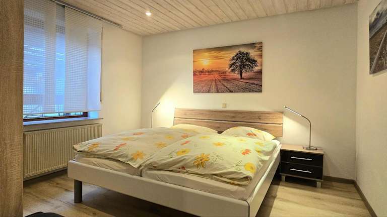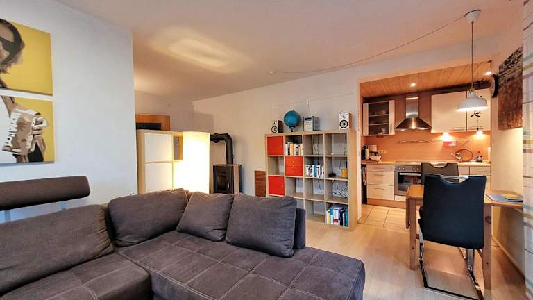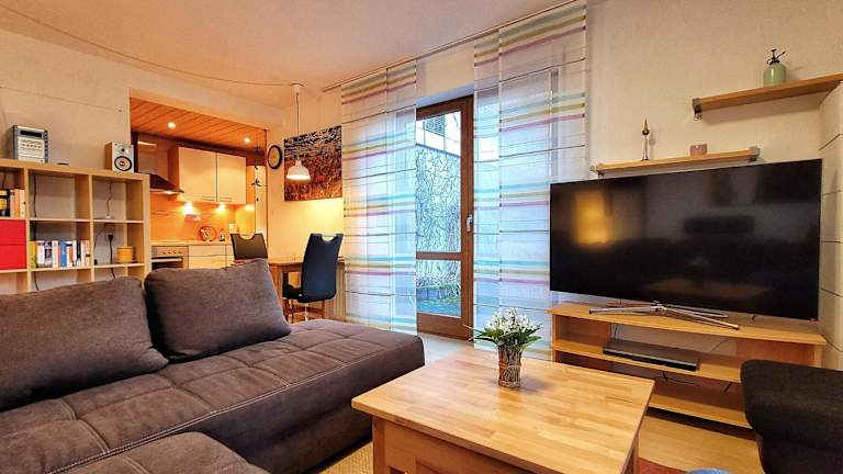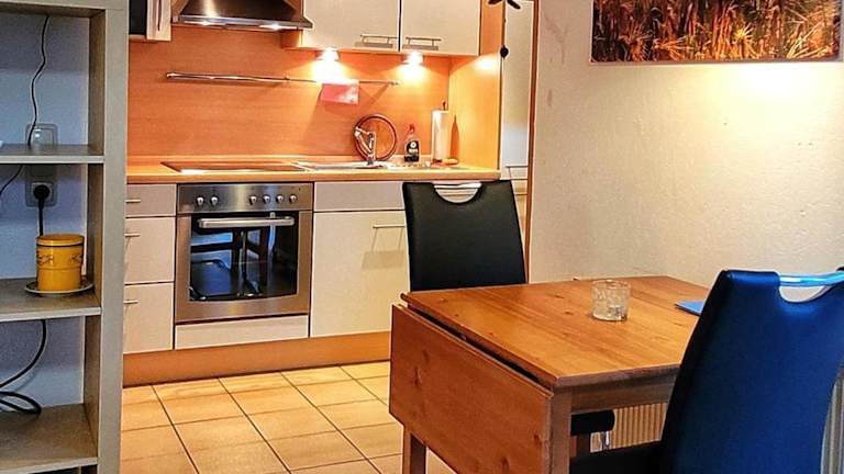 Die Ferienwohnung besteht aus einem Schlafzimmer, einem Wohnzimmer und einer voll ausgestatteten Küchenzeile mit Kühlschrank und Kaffeemaschine. Zudem gibt es ein Badezimmer mit Dusche und Haartrockner. Handtücher und Bettwäsche werden zur Verfügung gestellt.