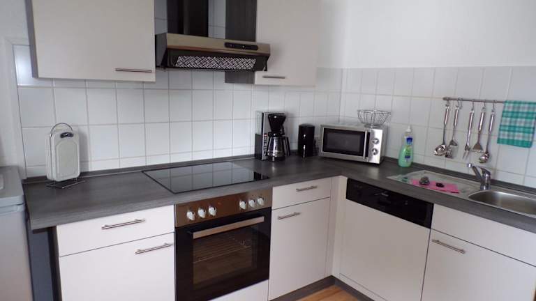 Die gut ausgestattete Küche in der Ferienwohnung ermöglicht es den Gästen, eigene Mahlzeiten zuzubereiten. Zudem besteht die Möglichkeit, den Zimmerservice in Anspruch zu nehmen. In der Umgebung sind weitere gastronomische Angebote vorhanden.
