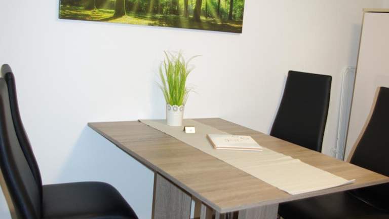 Die Ferienwohnung besteht aus 1 Schlafzimmer, einem Wohnzimmer, einer voll ausgestatteten Küche mit Kühlschrank und Kaffeemaschine sowie einem Badezimmer mit Dusche und Haartrockner. Handtücher und Bettwäsche sind in der Unterkunft vorhanden. Ein Kinderspielplatz sowie Gartenmöbel stehen zur Verfügung.