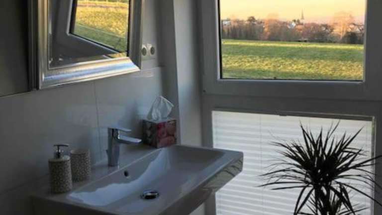 Wellness am Jenneberg mit Köln/Bonn- Ausblick bietet einen Whirlpool und einen einladenden Wellnessbereich mit Sauna. Die modernen Annehmlichkeiten und die Ferienwohnung gewährleisten eine angenehme Atmosphäre.