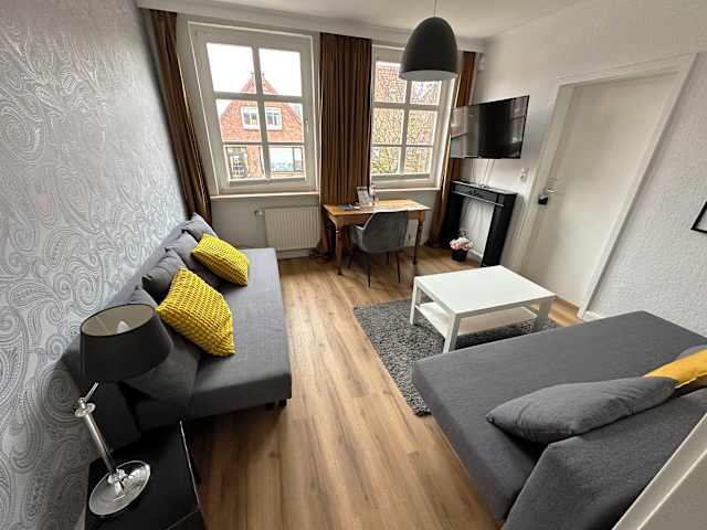 Die Ferienwohnung bietet Platz in zwei Schlafzimmern und einem Wohnzimmer. Sie ist mit einem Flachbild-TV, einer gut ausgestatteten Küche mit Kühlschrank und Geschirrspüler sowie einem Badezimmer mit Dusche ausgestattet. Handtücher und Bettwäsche sind gegen Aufpreis erhältlich.
