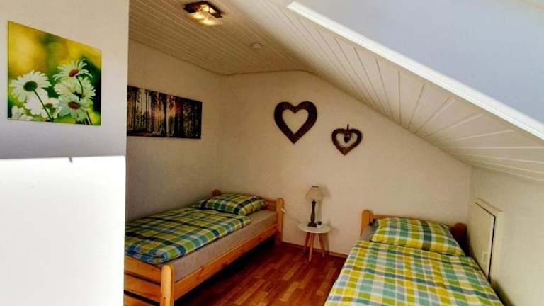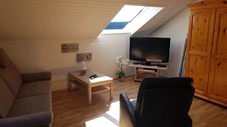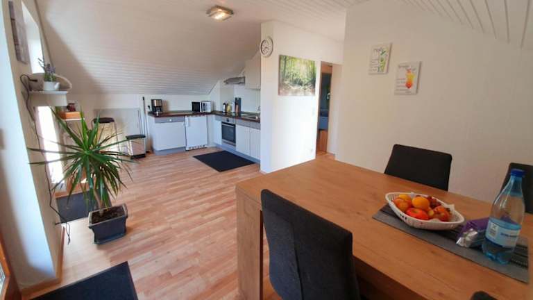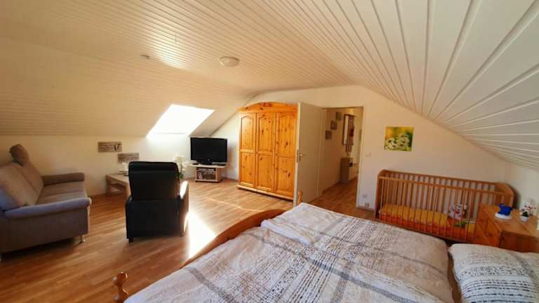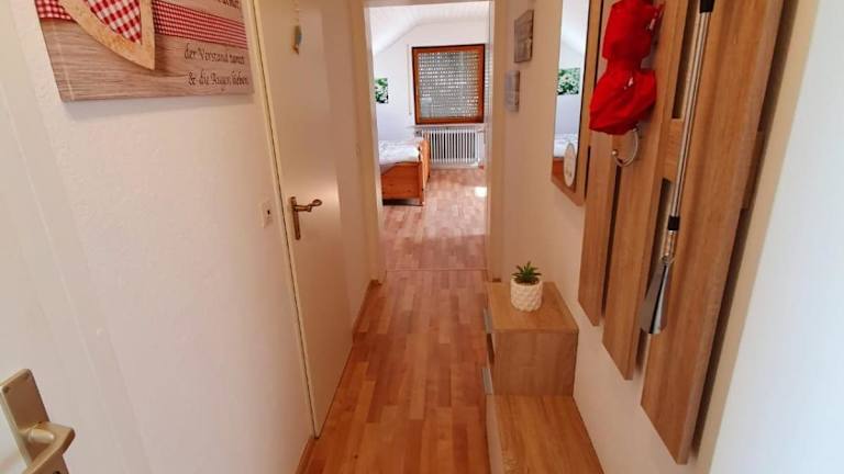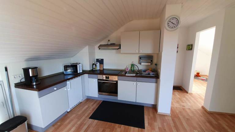 Die Ferienwohnung verfügt über ein Wohnzimmer mit Sitzbereich und Essbereich, eine gut ausgestattete Küche mit Kühlschrank, Ofen und Mikrowelle, sowie ein Badezimmer mit Dusche und Badewanne. Handtücher und Bettwäsche werden bereitgestellt. Das Zimmerangebot umfasst zwei Schlafzimmer, welche eine heimelige Atmosphäre bieten.