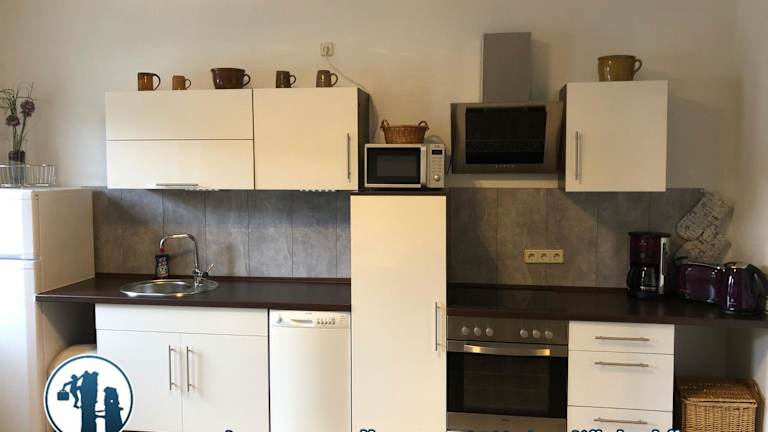 Die Ferienwohnung "Am Kletterfelsen" bietet Grillmöglichkeiten und einen schönen Blick auf den Garten. Es steht ein kostenloser Privatparkplatz zur Verfügung, sowie eine Gemeinschaftsküche und kostenloses Wifi.