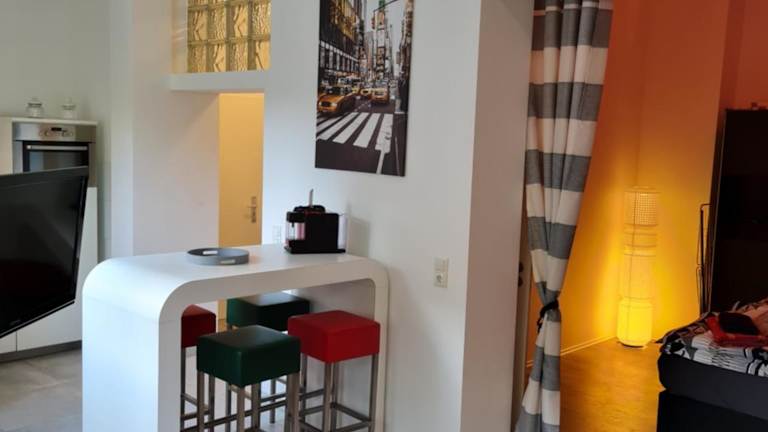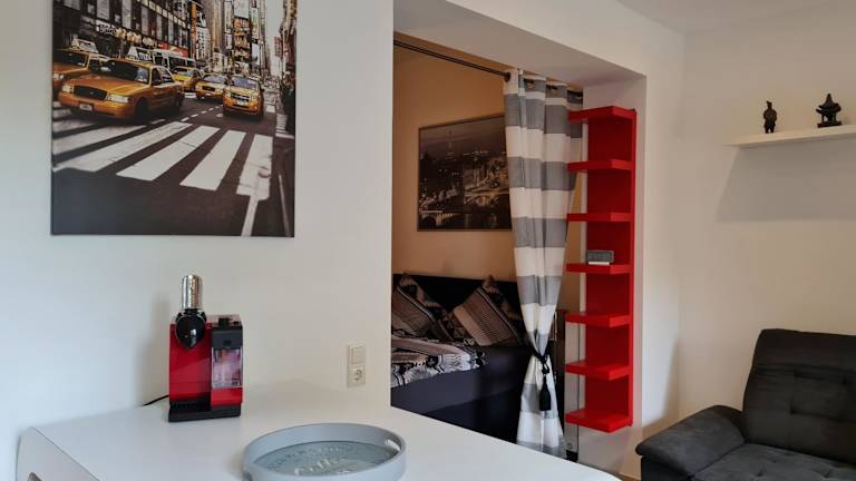 Die Ferienwohnung besteht aus einem Schlafzimmer, einem Wohnzimmer und einer voll ausgestatteten Küche. Zur Ausstattung gehören ein Kühlschrank, eine Kaffeemaschine sowie ein Badezimmer mit Dusche und Haartrockner. Handtücher und Bettwäsche werden zur Verfügung gestellt. WLAN ist in der gesamten Unterkunft kostenlos verfügbar.