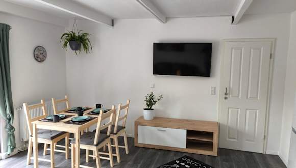 Die Ferienwohnung ist ausgestattet mit einem Schlafzimmer, einer Küchenzeile mit einem Kühlschrank und einem Geschirrspüler, einem Flachbild-TV, einem Sitzbereich und einem Badezimmer mit einer Dusche. Handtücher und Bettwäsche werden bereitgestellt.
