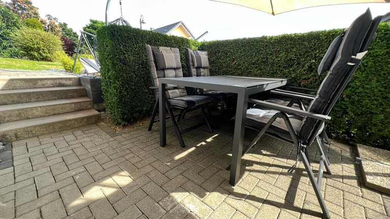 Die Ferienwohnung verfügt über 1 Schlafzimmer, ein Wohnzimmer, einen Flachbild-TV sowie eine gut ausgestattete Küchenzeile mit Kühlschrank und Geschirrspüler. Zudem gibt es 1 Badezimmer mit Dusche. Handtücher und Bettwäsche werden bereitgestellt, und eine Terrasse mit Gartenblick lädt zum Entspannen ein.