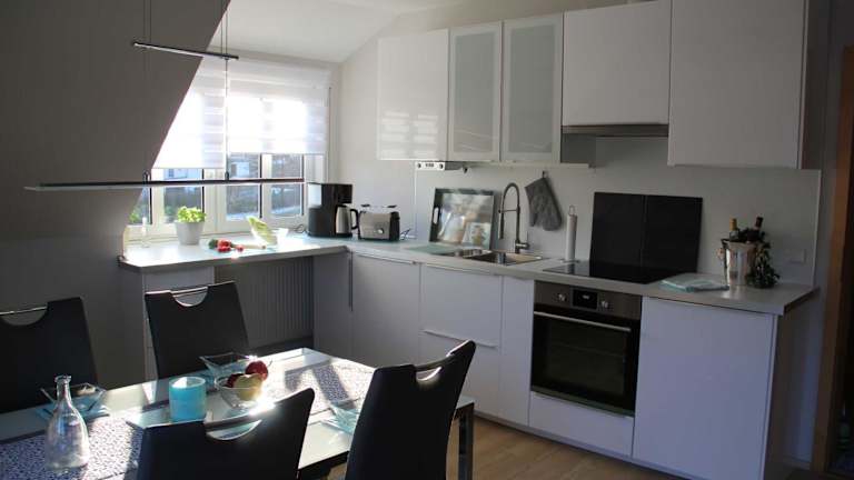 Die Ferienwohnung besteht aus zwei Schlafzimmern, einem Wohnzimmer und einer voll ausgestatteten Küchenzeile, die über einen Kühlschrank und eine Kaffeemaschine verfügt. Das Badezimmer ist mit einer Dusche und einem Haartrockner ausgestattet. Handtücher und Bettwäsche werden bereitgestellt. Allergikerfreundliche Zimmer sind ebenfalls erhältlich.