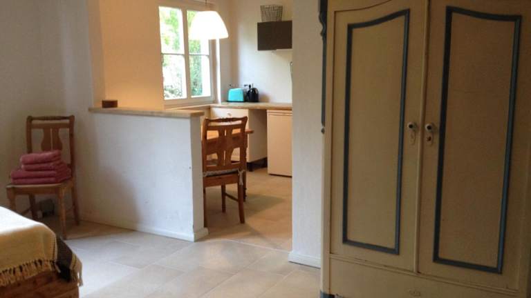 Die Ferienwohnung verfügt über ein Schlafzimmer, eine gut ausgestattete Küche mit Kühlschrank und Ofen sowie ein Badezimmer mit Dusche. Ein Flachbild-TV mit Satellitenkanälen ist ebenfalls vorhanden. Handtücher und Bettwäsche werden gestellt. Aufgrund der Nichtraucherrichtlinien sind alle Bereiche rauchfrei gestaltet.