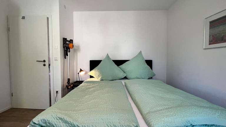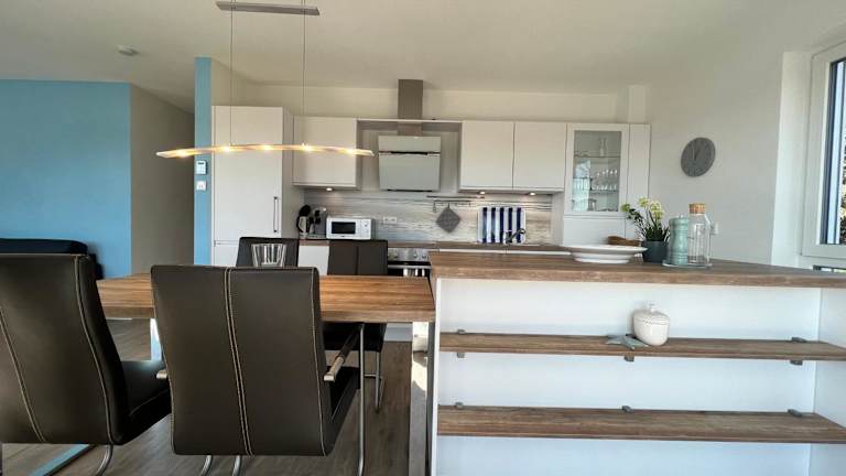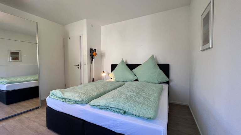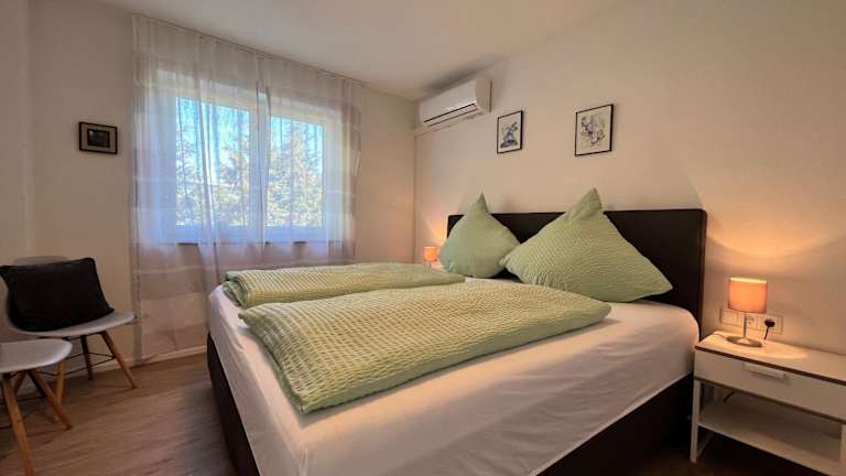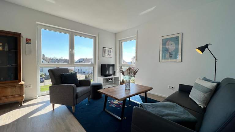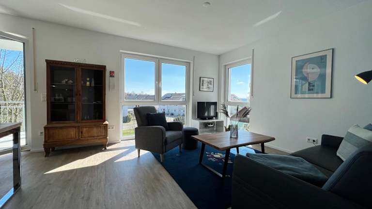 Die Ferienwohnung verfügt über einen Balkon, zwei Schlafzimmer, ein Wohnzimmer sowie eine gut ausgestattete Küche mit Kühlschrank und Geschirrspüler. Ein TV ist ebenfalls vorhanden.