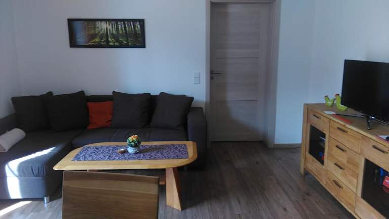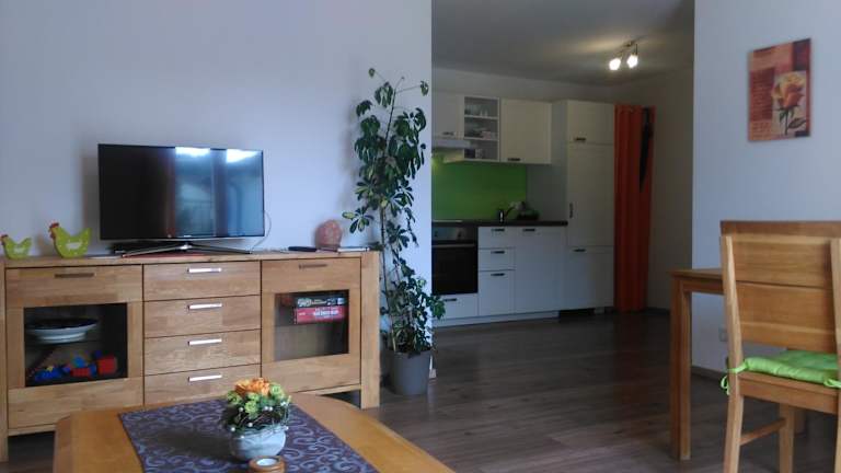 Die Ferienwohnung beinhaltet 2 Schlafzimmer, ein Wohnzimmer sowie eine gut ausgestattete Küche mit Kühlschrank und Ofen. Ein Flachbild-TV sorgt für Unterhaltung. Zudem verfügt die Ferienwohnung über ein Badezimmer mit Dusche. Handtücher und Bettwäsche werden bereitgestellt.