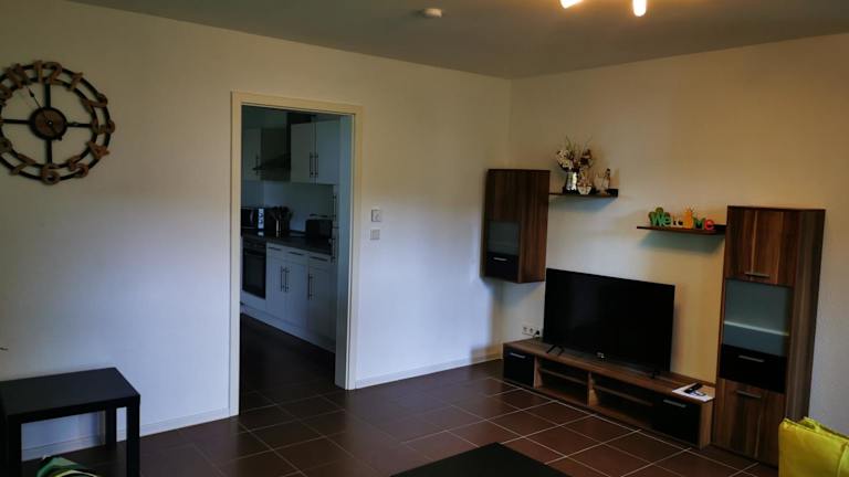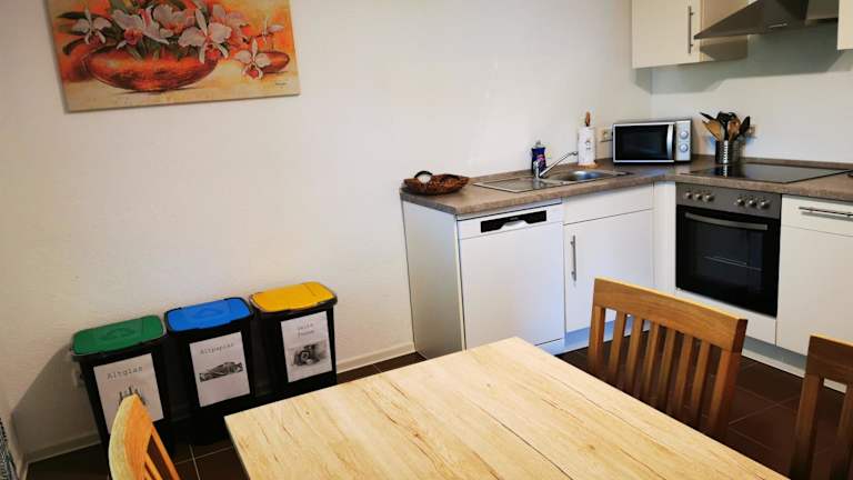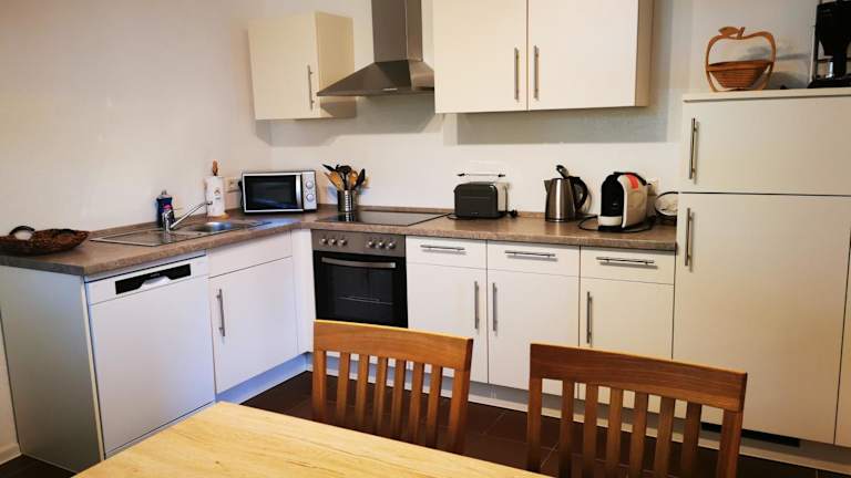 Die Ferienwohnung verfügt über 2 Schlafzimmer und ein Wohnzimmer mit einem Flachbild-TV mit Kabelkanälen. Eine voll ausgestattete Küche mit Kühlschrank und Geschirrspüler steht zur Verfügung. Zudem gibt es ein Badezimmer mit Badewanne. Handtücher und Bettwäsche werden bereitgestellt.
