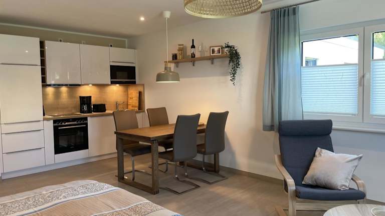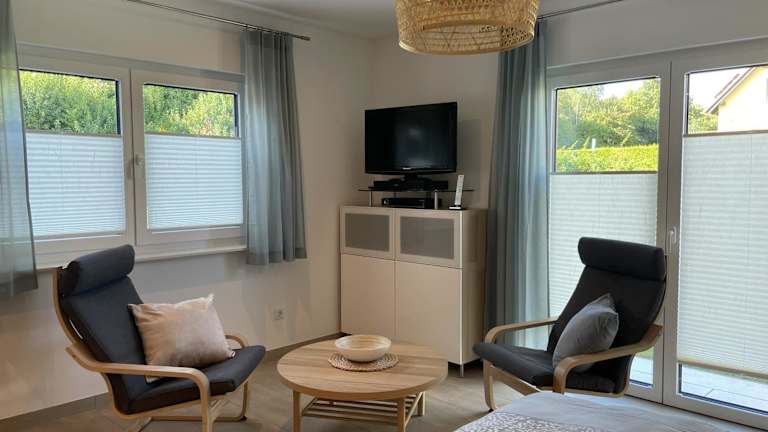 Die Unterkunft Ferienwohnung Am Wall bietet kostenloses Wifi und eine angenehme Klimatisierung. Die helle, heimelige Atmosphäre wird durch einen schönen Gartenblick ergänzt.