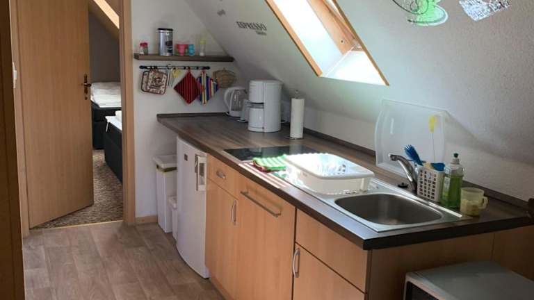 Die Unterkunft bietet die Möglichkeit zur Selbstverpflegung durch eine gut ausgestattete Küche, die mit einem Kühlschrank und einem Geschirrspüler ausgestattet ist. Snacks und Mahlzeiten können selbst zubereitet werden. Es sind keine Informationen über zusätzliche Verpflegungsmöglichkeiten vorhanden.