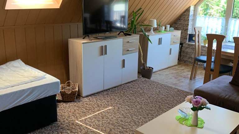 Die Ferienwohnung besteht aus einem Schlafzimmer und einem Wohnzimmer und bietet Platz für Gäste, die eine ruhige und heimelige Atmosphäre suchen. Die Ausstattung umfasst einen TV sowie gratis WLAN und eine Terrasse, die Platz für Gartenmöbel bietet.