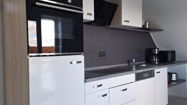 Die Ferienwohnung verfügt über ein Schlafzimmer und ein Badezimmer. Zur Ausstattung gehören eine voll ausgestattete Küche, ein Essbereich sowie ein Flachbild-TV mit Satellitenkanälen. Die Gäste finden zudem Bettwäsche und Handtücher vor. Ein Balkon mit Stadtblick lädt zum Verweilen ein.