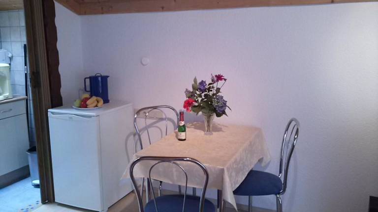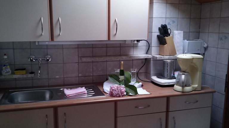 Die Ferienwohnung bietet ein Schlafzimmer sowie eine Küchenzeile, die mit einem Kühlschrank, einer Herdplatte und einer Kaffeemaschine ausgestattet ist. Zudem gibt es einen TV zur Unterhaltung.