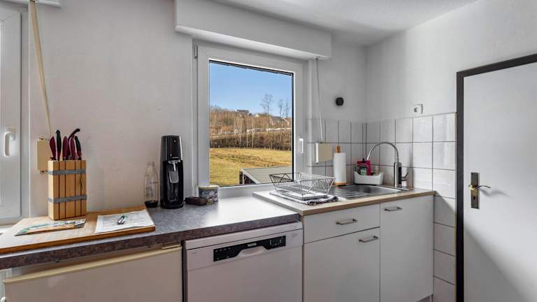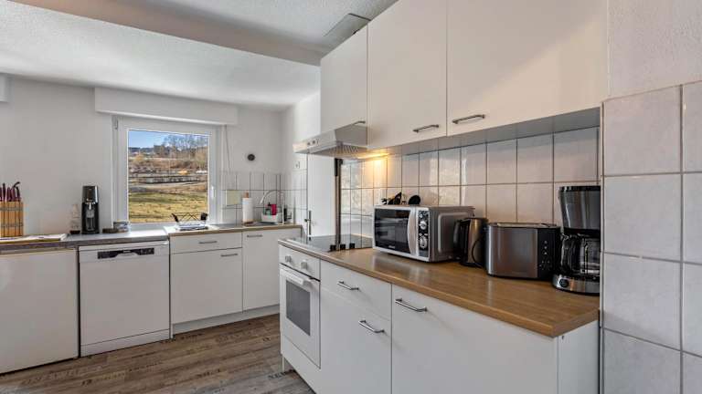 Die Ferienwohnung verfügt über eine voll ausgestattete Küche mit Kühlschrank und Kaffeemaschine. Grillmöglichkeiten stehen ebenfalls zur Verfügung.