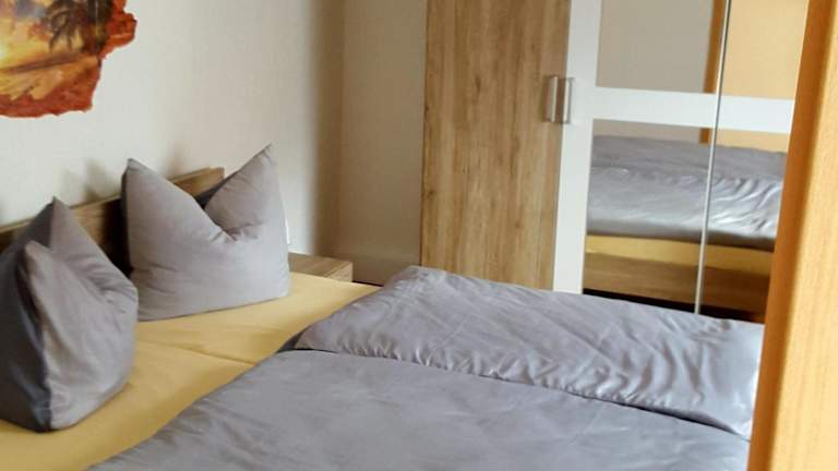 Die Ferienwohnung verfügt über zwei gemütliche Schlafzimmer, ein Badezimmer und eine voll ausgestattete Küche. Der Balkon bietet einen angenehmen Ausblick auf den Garten und ist ideal, um entspannte Stunden zu verbringen.