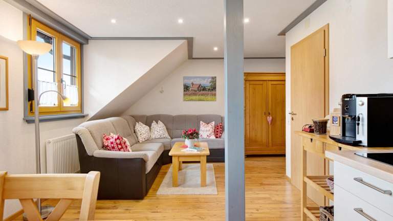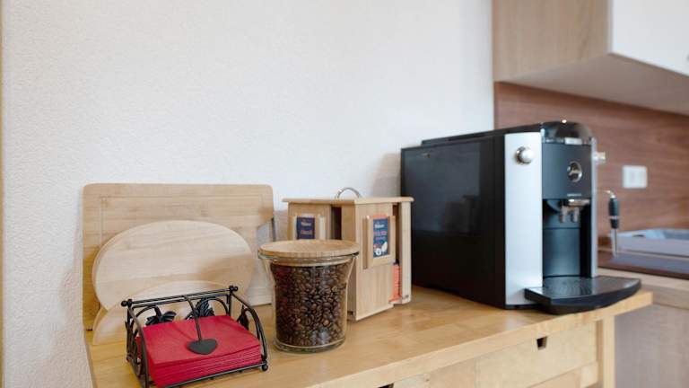 Die Ferienwohnung besteht aus einem Schlafzimmer, einem Wohnzimmer und einer voll ausgestatteten Küche, die mit einem Kühlschrank und einer Kaffeemaschine ausgestattet ist. Zudem steht ein Badezimmer mit Dusche und kostenlosen Pflegeprodukten zur Verfügung. Handtücher und Bettwäsche werden bereitgestellt.