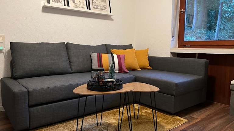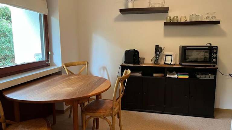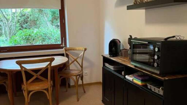 Die Ferienwohnung umfasst ein Schlafzimmer, ein Wohnzimmer sowie eine voll ausgestattete Küche mit Kühlschrank und Kaffeemaschine. Ein Badezimmer mit Dusche und kostenlosen Pflegeprodukten ist ebenfalls vorhanden. Handtücher und Bettwäsche werden bereitgestellt.