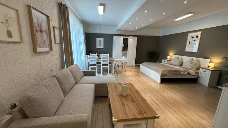 Die Ferienwohnung auf dem Land bietet ein Ambiente ideal für ruhige Aufenthalte auf dem Land. Es handelt sich um ein privat geführtes Appartement. Die Einrichtung ist komfortabel und praktisch, mit einer Terrasse und Grillmöglichkeiten, die den Gästen zur Verfügung stehen. Die Unterkunft macht einen sauberen und gut organisierten Eindruck.
