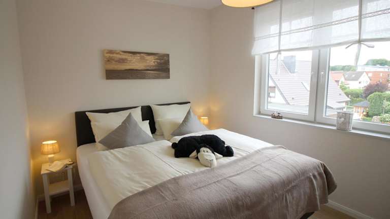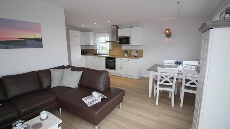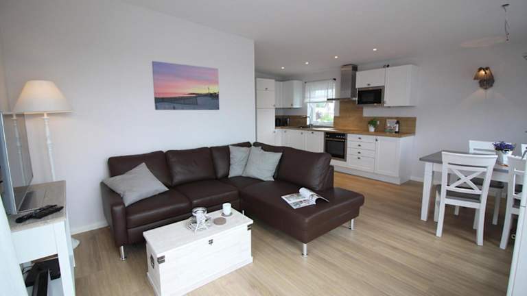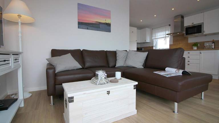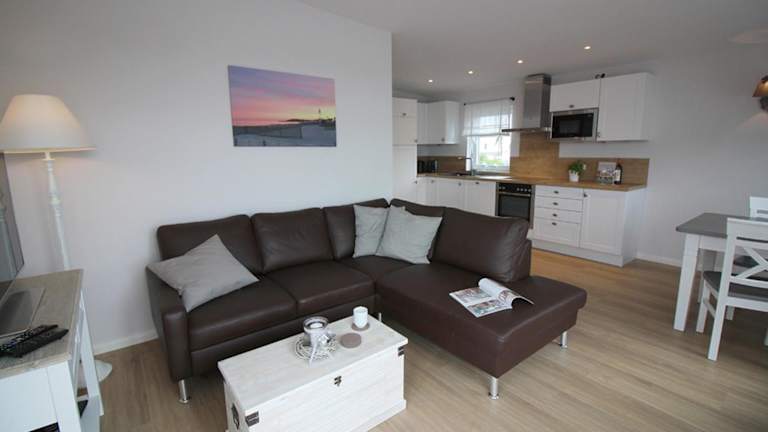 Die Ferienwohnung umfasst 2 Schlafzimmer sowie eine Küchenzeile mit Kühlschrank, Geschirrspüler und Kaffeemaschine. Handtücher und Bettwäsche werden zur Verfügung gestellt. Sonnenstühle/-liegen stehen ebenfalls zur Verfügung.