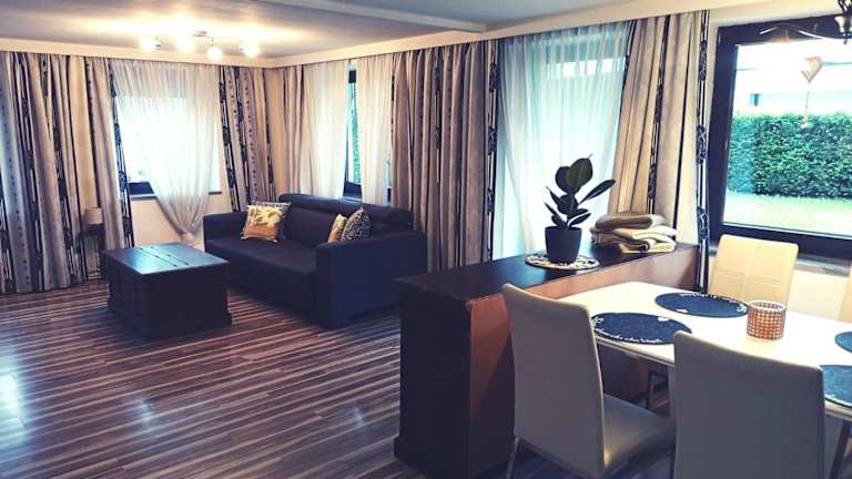 Die Ferienwohnung verfügt über 1 Schlafzimmer, ein Wohnzimmer, einen Flachbild-TV und eine gut ausgestattete Küche mit Kühlschrank und Geschirrspüler. Es gibt 1 Badezimmer mit einer Dusche. Handtücher und Bettwäsche werden in der Unterkunft bereitgestellt.