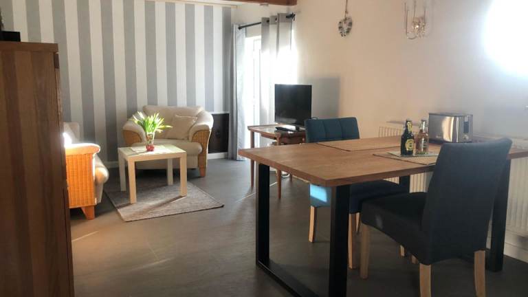Die Ferienwohnung umfasst 1 Schlafzimmer und eine Küchenzeile, die mit einem Kühlschrank und einem Geschirrspüler ausgestattet ist. Das Badezimmer verfügt über eine Dusche, einen Haartrockner und eine Waschmaschine. Handtücher und Bettwäsche werden bereitgestellt.